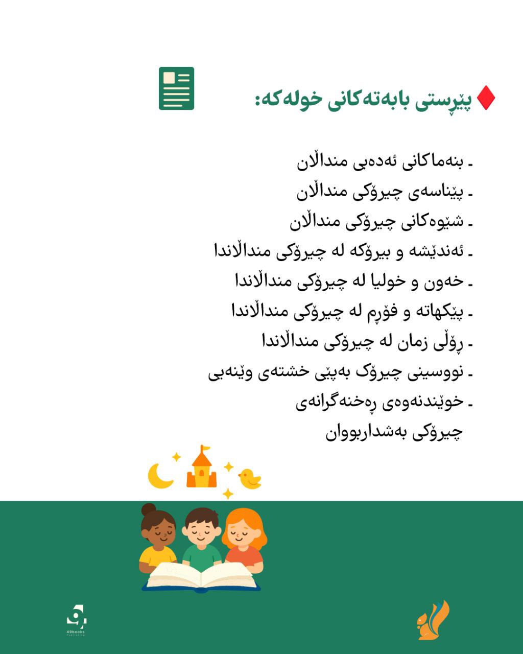 – ناوەندی 49 کتێب ڕایدەگەیەنێت کە خولێکی فێرکاریی تایبەت بە چیرۆکنووسین بۆ منداڵان بە شێوەی سەرهێڵ بەڕێوەدەبات. ئەم خولە بە ئامانجی پەرەپێدانی تواناکانی گەورەساڵان لە بواری نووسینی چیرۆکی منداڵاندا داڕێژراوە و دەرفەتێکی ناوازە دەڕەخسێنێت بۆ وەرگرتنی ئەزموون لە نووسەرێکی دیاری بواری منداڵان.